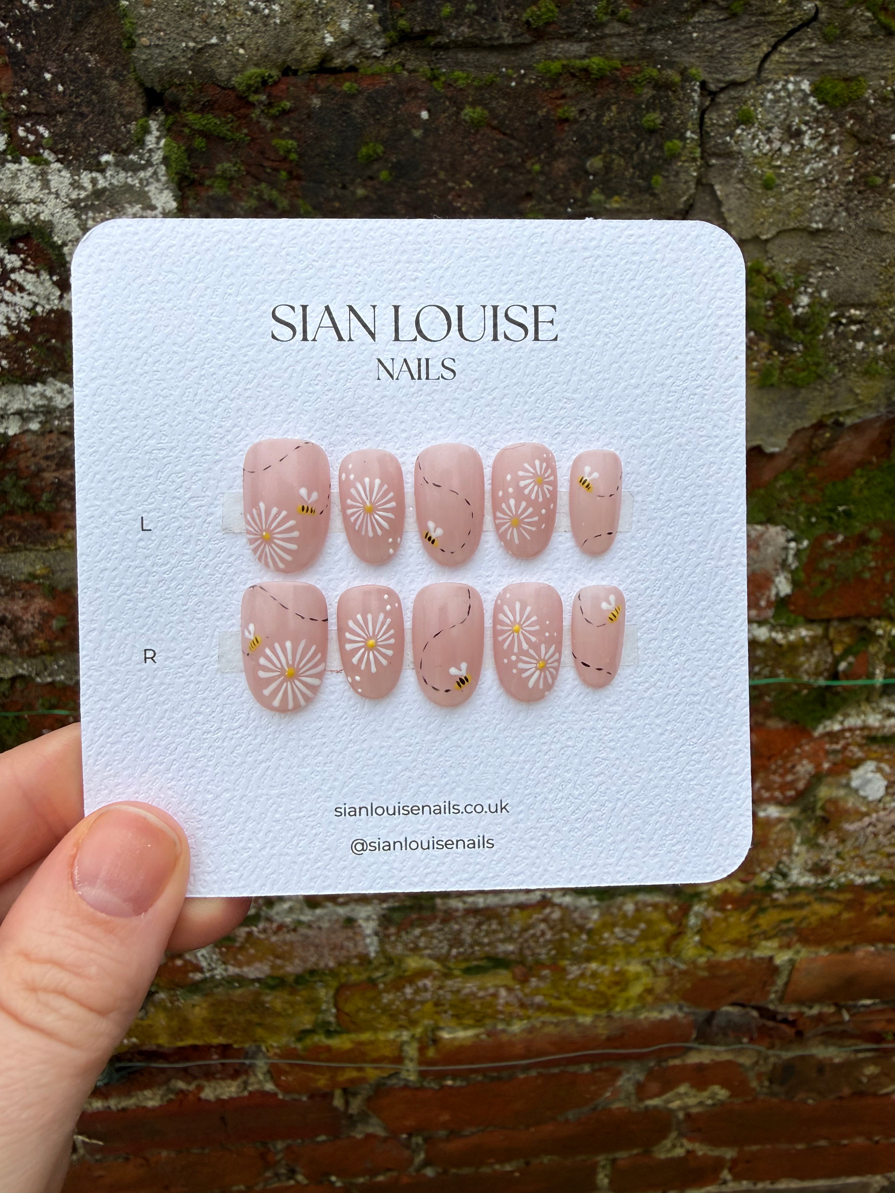 Hand-painted press-on nails, lovingly created by a qualified nail technician using professional, salon-quality products. Each set is carefully designed and painted by hand, giving you that fresh-from-the-salon look without the salon appointment.